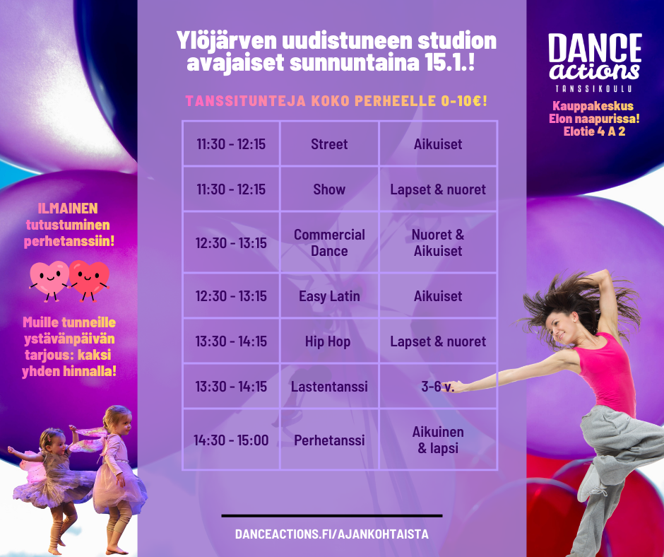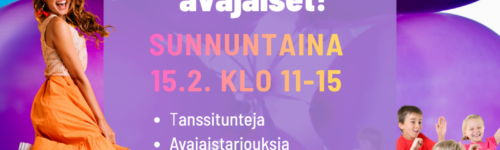 • Lapsiperheille täysin ILMAINEN tutustuminen perhetanssiin klo 14:30 -15:00